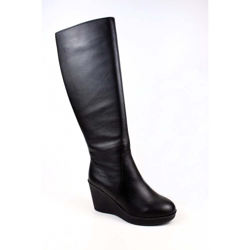 Сапоги женские. Цвет - черный. Материал верха - натуральная кожа, материал подкладки - евромех. Подошва - ТЭП. Вид застежки - молния. Высота каблука - 7 см.